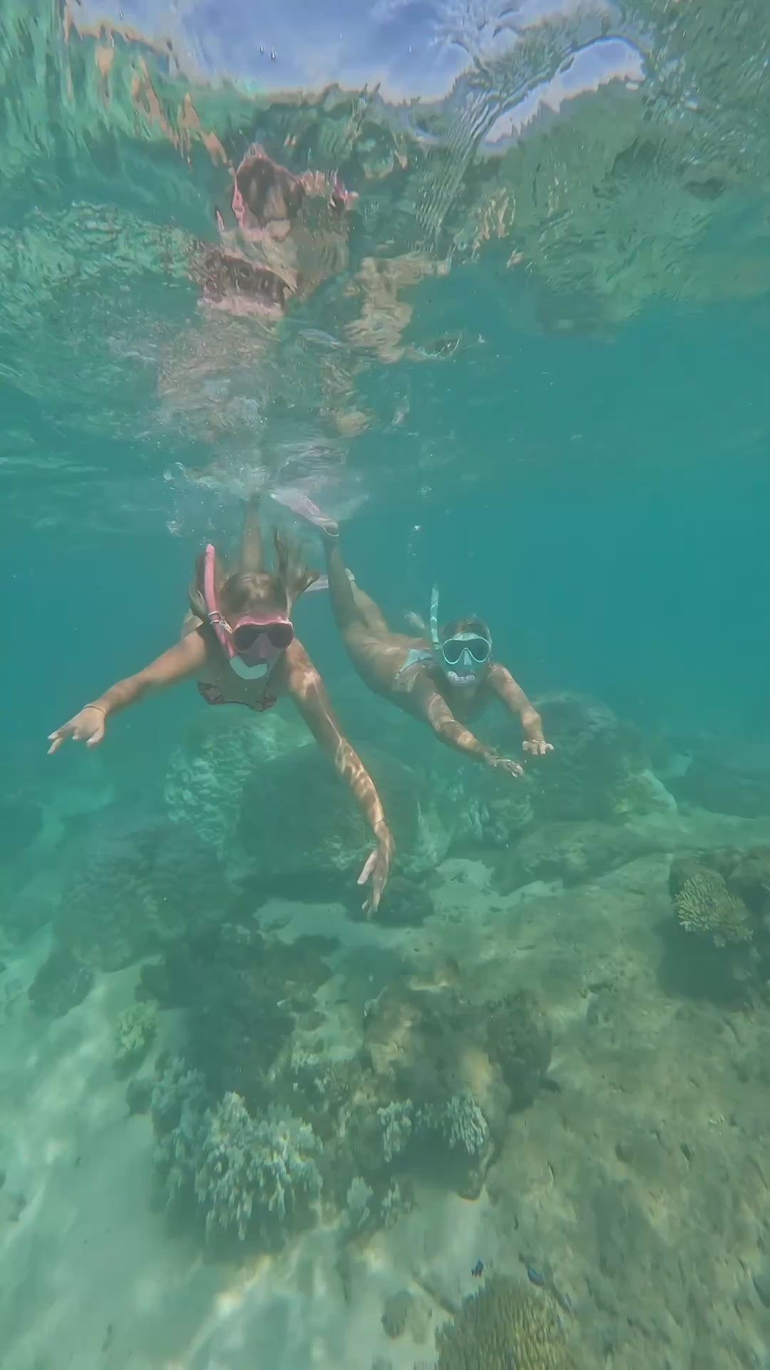 Dive into double the fun with this snorkel set featuring two vibrant...